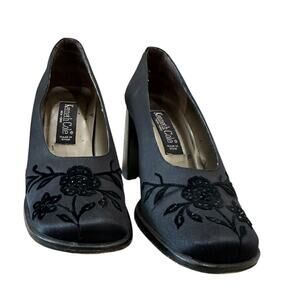 Vintage Kenneth Cole Embroidered Satin Pumps
