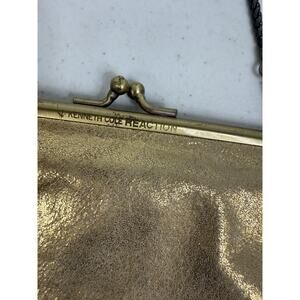 Chic vintage gold clutch by Kenneth Cole Reaction with classic kiss lock closure. Elegant metallic finish—perfect for evening events or retro glam style!