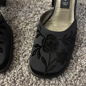 Vintage Kenneth Cole block heels satin with floral embroidered detail. Still in great condition with light wear on the soles. Comes with the original box.