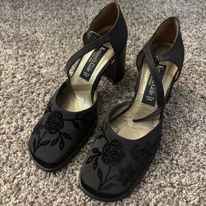 Vintage Kenneth Cole Satin Floral Embroidered Block Heels - Size 7.5