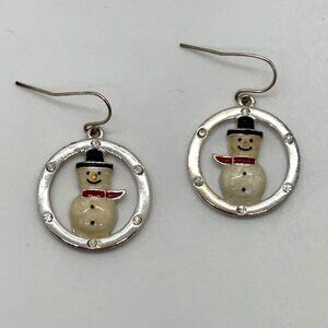Vintage Kenneth Cole Snowman Earrings Pierced Silver-Tone Holiday Rhinestones