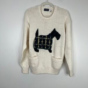 Vintage Kenneth Gordon Cotton Wool Blend Scottish Terrier Knit Sweater Sz L