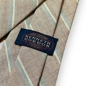 Vintage Kenneth Gordon Silk Reverse Print Look Striped Cream Red Blue Stripe Tie