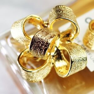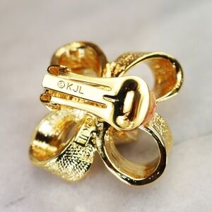 Gorgeous, brand new earrings by Kenneth Lane feature festive, textured, three dimensional, gold plated bows. Perfect for gift giving...new with tags & arrives gift wrapped. These pieces are signed on the clip mechanisms and also on the earring backs. They measure 1"L x 1"W and are in perfect condition, never worn. Let us know if you would like new Carolee earring pads. Also take a look at the other vintage Kenneth Lane jewelry and other accessories available in our shop and boutique.