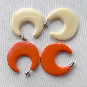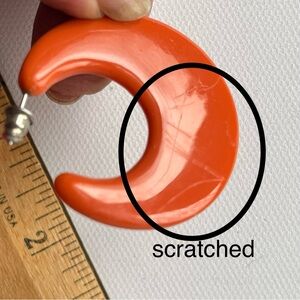 Orange pair has scratches on one earring/one side. Wear that one on your left ear and no one will see the scratches.