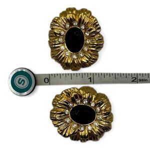 Vintage Kenneth Jay Lane Avon Sunflower Earrings Clip Signed Black Gold KJL
