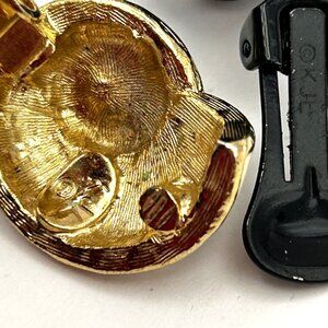 Condition: Pre-owned vintage condition; light surface wear consistent with age. Enamel and rhinestones intact, clip backs function properly.