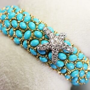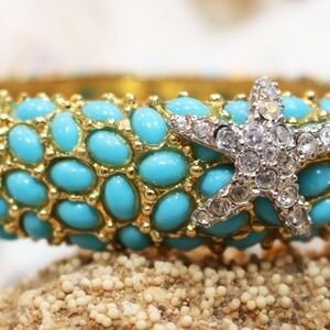 ⚜️ Vintage Kenneth Jay Lane Crystal Starfish Turquoise Cabochon Bracelet