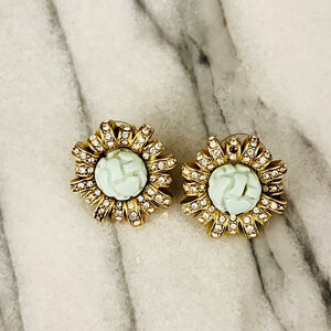 Vintage Kenneth Jay Lane Earrings Blue Acrylic Pave Accent Clip On KJL