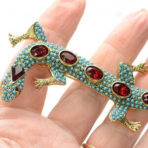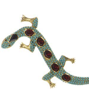 Vintage Kenneth Jay Lane KJL C Turquoise & Crystal Lizard Pin Brooch