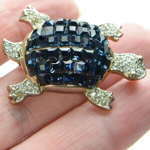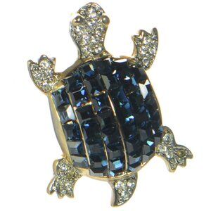 Vintage Kenneth Jay Lane KJL Crystal Turtle Pin Brooch