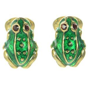 Vintage Kenneth Jay Lane KJL Enamel & Crystal Clip-On Frog Earrings