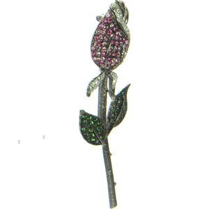Vintage Kenneth Jay Lane KJL Gunmetal Crystal Flower Pin Brooch