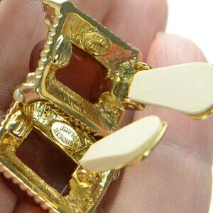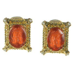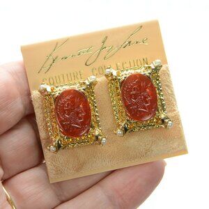 Vintage Kenneth Jay Lane KJL Pearl & Gold Carved Earrings