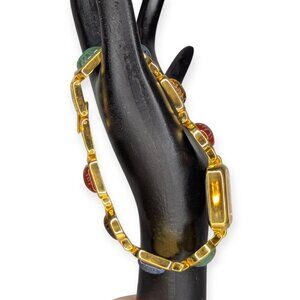 Kenneth Jay Lane Authentic Precious Stones Limited Edition Watch Circa 2002. Each Stone is hand-carved. Collectors edition watch. Japan quartz movement, stainless steel back. Roman numeral numbers. Fold over clasp. Excellent condition. 8”.