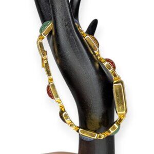 Vintage EUC Kenneth Jay Lane (KJL) women's Scarab watch with Quartz movement in a gold tone and multicolor accents.