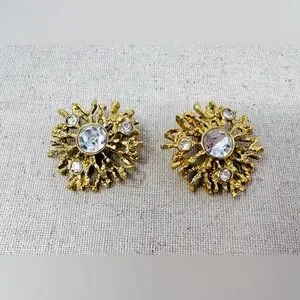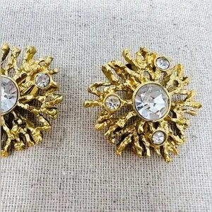 Vintage Kenneth Jay Lane “Regal Riches” Collection Sunburst Clip-On Earrings