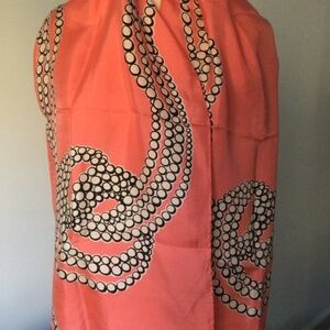 Beautiful vintage Kenneth Jany Lane 100% silk scarf in a salmon pink color (first pictures best reflect the actual color).