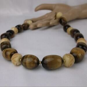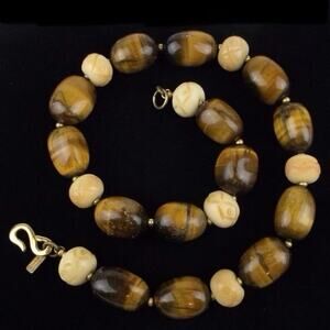 Vintage Kenneth Jay Lane Tigers Eye Necklace Carved Bead 18”