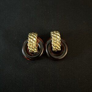 Vintage Kenneth Lane Door Knock Clip On Earrings Gold Tone Tortoise Read