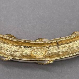 Vintage Kenneth Jay Lane Enamel with Gold Accents Choker Necklace Cream Hook Closure