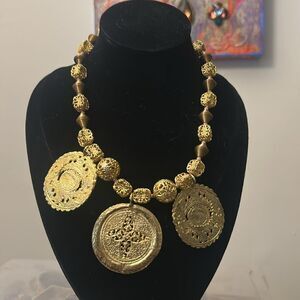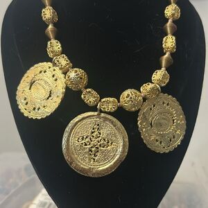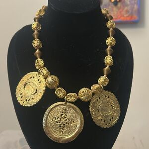 Vintage Kenneth Lane Ethnic Medallion Necklace 19" KJL Filigree Coiled Beads