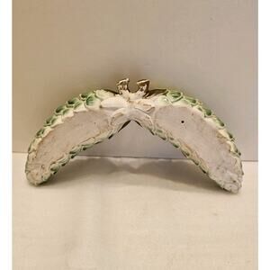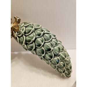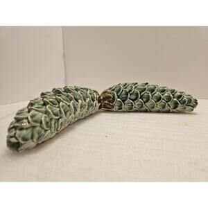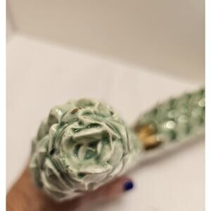 Vintage Kent Art Ware, Green Pinecones Holiday Christmas, Porcelain Japan Signed (Kent Art Ware) by the gold painter. In good vintage condition. A few flea bites on the end of the pine cones. See photos. There is a little bit of gold rub because the previous owner had it attached to a mirror with a piece of wire. Probably could be touched up fairly easy with rub and buff. But it's still shiny and glossy and a great piece of vintage Christmas. Measures 12 in. See photos for condition, details and measurements. Ask me any questions. I want you to love your purchase.