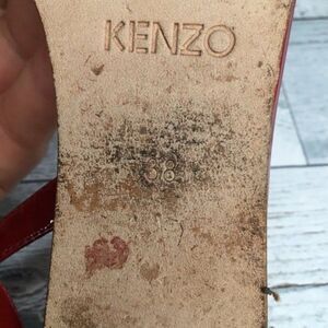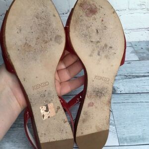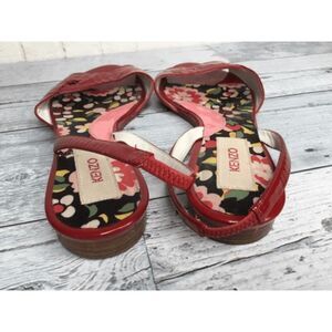 Vintage Kenzo Red Patent Leather Slingback Flat Sandals Women Size 38/US7.5