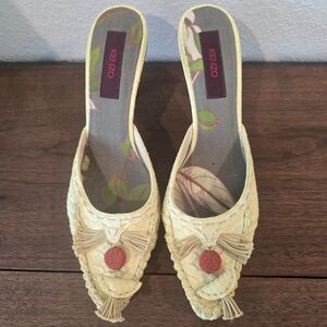 Vintage Kenzo Yellow Leather Snake Mule Heels w/ Beaded Tassle Sz 39 (US 8.5)