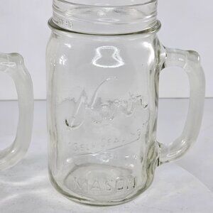 Kerr mason jar mugs ideal for cold beverages. Sturdy handle for easy grip. Classic design.
