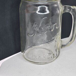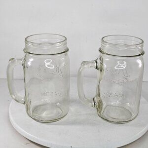 Vintage Kerr Self Sealing Mason Jar With Handle Set of 2 5.4" Glass Cup Mug