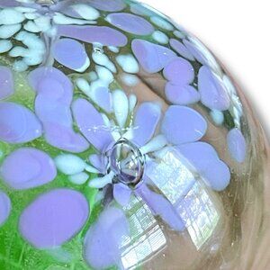 Vintage Kerry Art Glass Ireland Paperweight Purple White Green Floral Flowers 3"