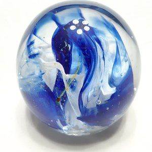 Vintage Kerry Glass Paperweight Round Size Small Blue Swirl Latticinio 3 in Tall