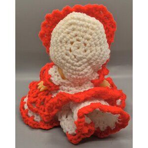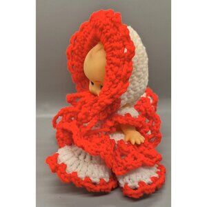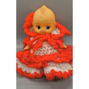 Vintage Kewpie Doll with Hand Crochet Clothes Red Dress 7 3/4" Tall