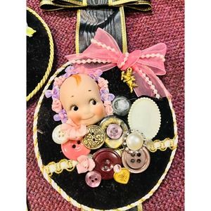 Vintage Handmade Kewpie Decor can be made a center piece or a nice wreath . Both have vintage buttons with a pink and a blue bow . Kewpie adorable face . Please view all pictures . Ready to ship . Thank you !