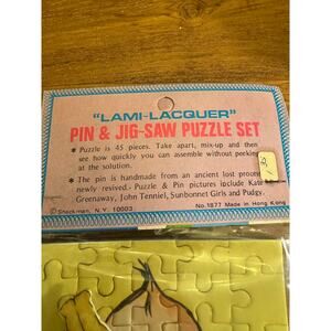 This vintage Lami-Lacquer Pin & Jigsaw Puzzle Set featuring a charming Kewpie design is a delightful find! Made in Hong Kong by Shackman, this set is a nostalgic treasure. The set appears to be in good condition for its age. Perfect for collectors or anyone who appreciates vintage toys and puzzles. Add a touch of retro fun to your collection with this unique Kewpie set!