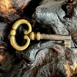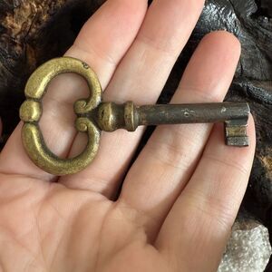 Vintage Key Armoire Drawer Brass Bow Steel Shank Open Barrel