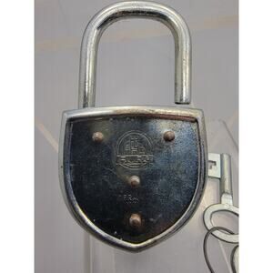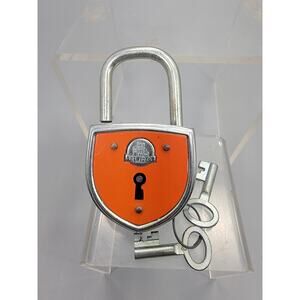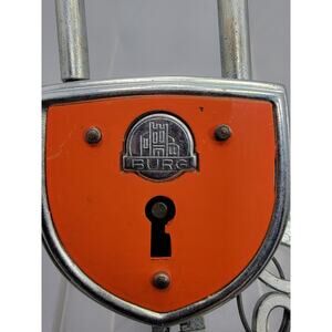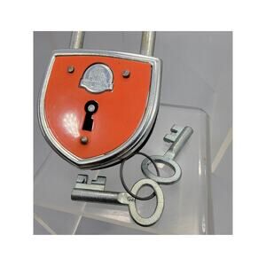 Vintage Key Burg German Padlock Flat Metal Pad Small Keys Red Lock Works