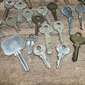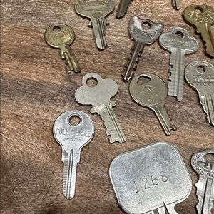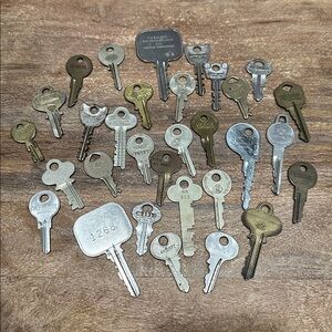 31 Assorted vintage keys in various metallic shades. Perfect for collectors or craft projects.