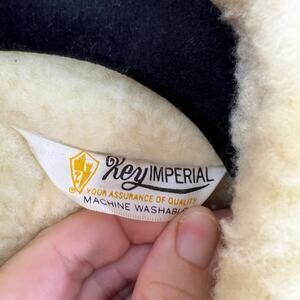 Vintage Key Imperial wool/ sherpa lined denim winter heavy coat, button front, wool collar, pockets. Men's size large-Xlarge.