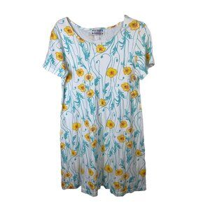 Vintage Key West Hand Print Fashions Floral Print Cotton T Shirt Dress L RARE