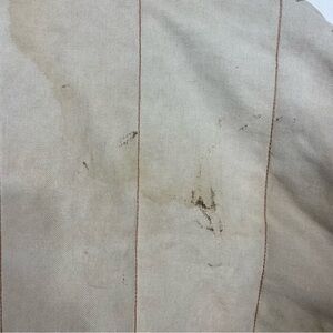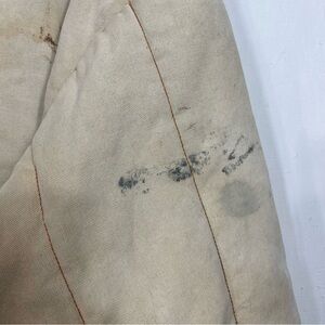 Stains and discolorations throughout. See pics for details. Jacket is in useable condition with the rugged work look.