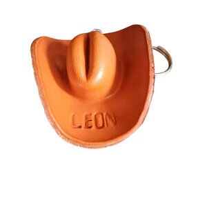 Step back in time with this charming leather keychain, shaped as a miniature cowboy hat. Crafted with care by Leon, it embodies vintage Western flair, making it an ideal accessory for enthusiasts of classic Americana. Its rich hues and tactile feel evoke the spirit of the Wild West.