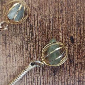 Two vintage keychains. Both contain a green stone.