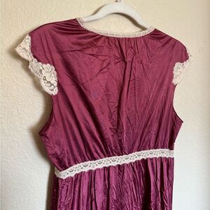 Vintage Keyhole Nylon Slip Dress Lace Details Sz Medium Cap Sleeves Burgundy Red