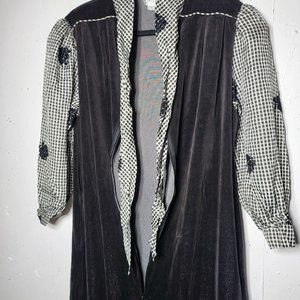 Vintage Union Made Keyloun Womens Black Velvet Gingham Plaid Floral Sleeve Half Zip Robe Dress
