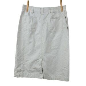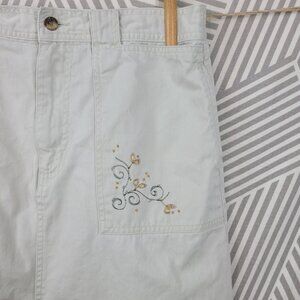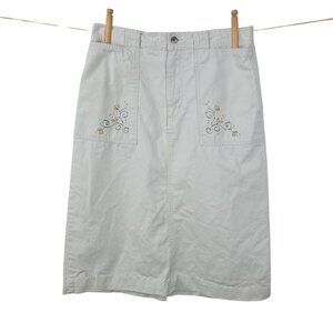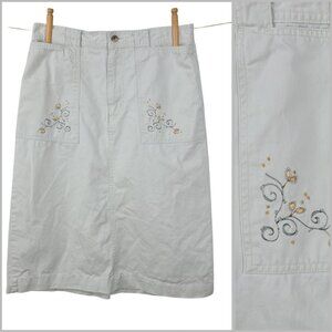 Vintage Khaki Skirt size 10 Slit Tan Embroidered Pockets Womens Midi Modest