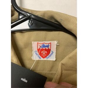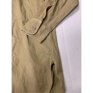 Mens khaki colored vintage button down uniform style work shirt. Excellent vintage condition. Mens size medium-large.