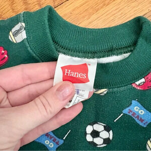 Vintage Kids Hanes Green Sports Print Crewneck Sweatshirt Size 6 Months