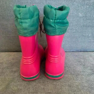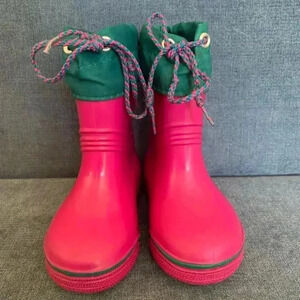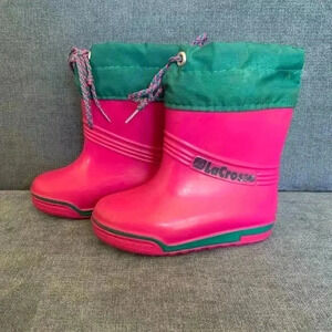 Vintage Kids Lacrosse Waterproof Rain and Mud Pink and Green Slip On Boots